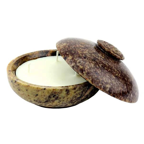 Each elegant soapstone candle jar is hand carved with love and care by passionate artisans in India. No two pieces are exactly alike.